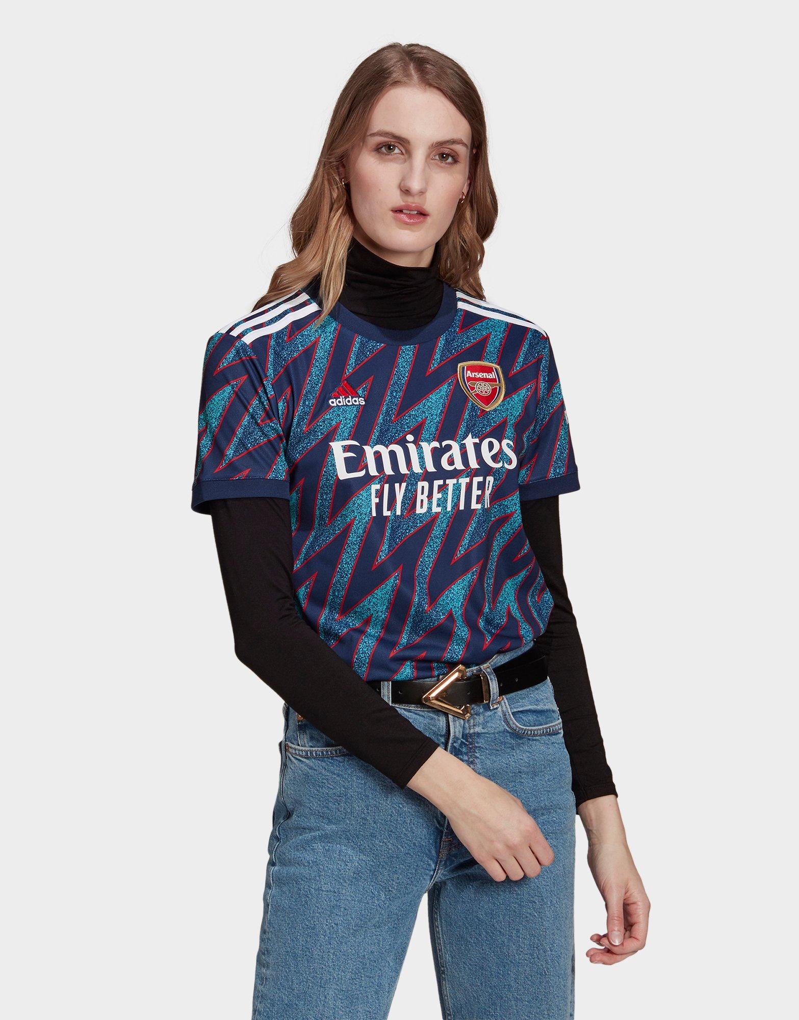 Arsenal womens 21/22 authentic third shirt. The arsenal home kit has taken inspiration from elements of the clubs former highbury home, paying homage to the past but engineered with aeroready technology to suit the modern game. Arsenal away jersey retro 1992/93 by adidas. The shirt is combined with a turquoise graphic and white / red logos. Arsenal third away jersey 2021/22 by adidas.